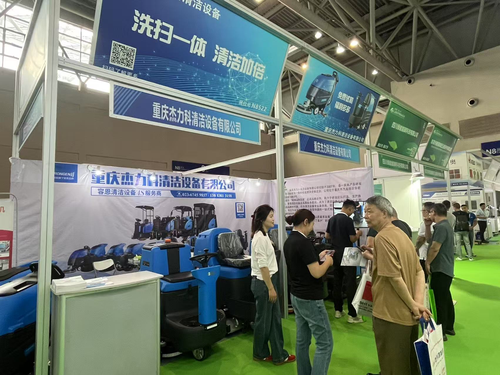 走進智能化館,感受到了智能化給我們生活帶來的變化,不再是傳統的人工進行工作,智能化提高了工作效率,改變了工人們的工作方式,創造了舒適的工作環境,提升工人們的幸福感。重慶杰力科清潔設備也來到了現場,希望給工廠們帶去干凈的地面環境,保證產品質量的有效產出。下面就來展示一下我們在展會活動中的精彩瞬間吧!