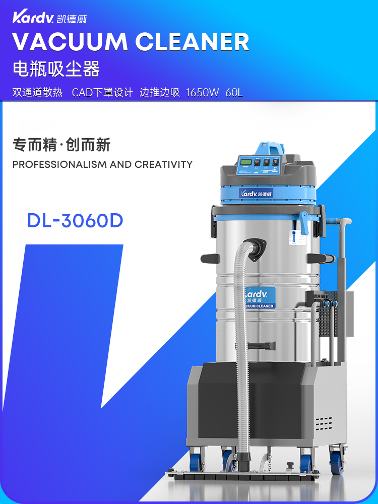 1、凱德威電瓶式吸塵器是我司的一款充電式工業吸塵器,摒棄了常規拖線式吸塵器使用范圍的局限性,此款吸塵器利用蓄電池做為電力源,無需外接電源,操作簡單方便。