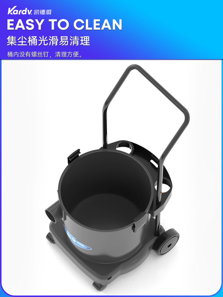7、 集塵桶為PP注塑而成,桶內無螺絲釘,光滑易清理,集塵桶為32L。