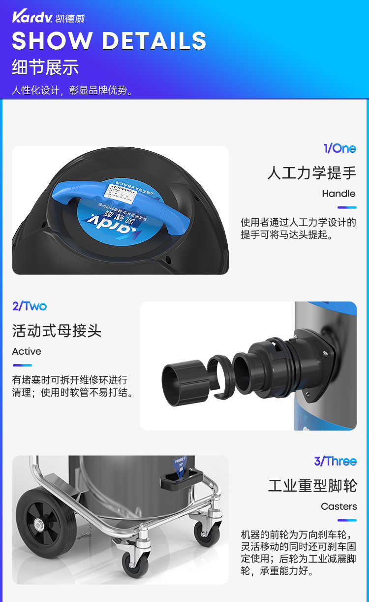 集塵桶及車架為不銹鋼材質(zhì)耐撞擊,前輪為360度旋轉(zhuǎn)的萬(wàn)向輪,并帶有剎車裝置,可傾倒設(shè)計(jì)使清理更容易操作,五層過濾系統(tǒng),排出的空氣干凈,創(chuàng)新的FPPR3200濾芯有兩層過濾:第一層為多元酯材質(zhì),第二層為玻璃纖維毛材質(zhì),過濾面積為3200平方厘米,對(duì)粉末、油類、堿性物有很好的過濾效果,集塵率為99.993%,符合BIA“C”可過濾粒子直徑為0.28UM的微粒,可吸塵、吸水、吸油且耐酸、耐堿、耐撞擊;可以有20多個(gè)小時(shí)的工作時(shí)間;結(jié)合機(jī)器堅(jiān)固易清理的光滑表面,使此吸塵器更耐用。