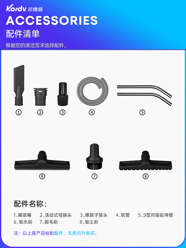 可用在工廠、酒店、賓館地毯清洗后的日常處理,也可以單獨吸塵、吸水、吸油、吸鐵屑、吸砂石、吸玻璃碎片等物質,也可與其它產品配套使用,也可用作廢料收集。