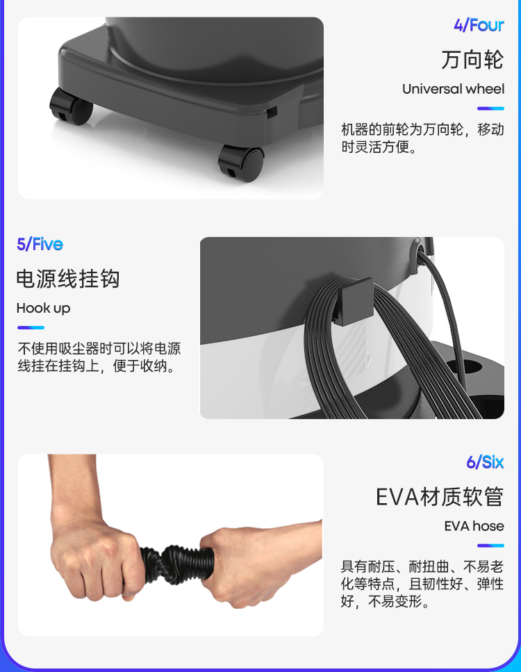 4.可持續20多個小時運轉;結合機器堅固易清理的光滑表面,使此吸塵器更耐用。